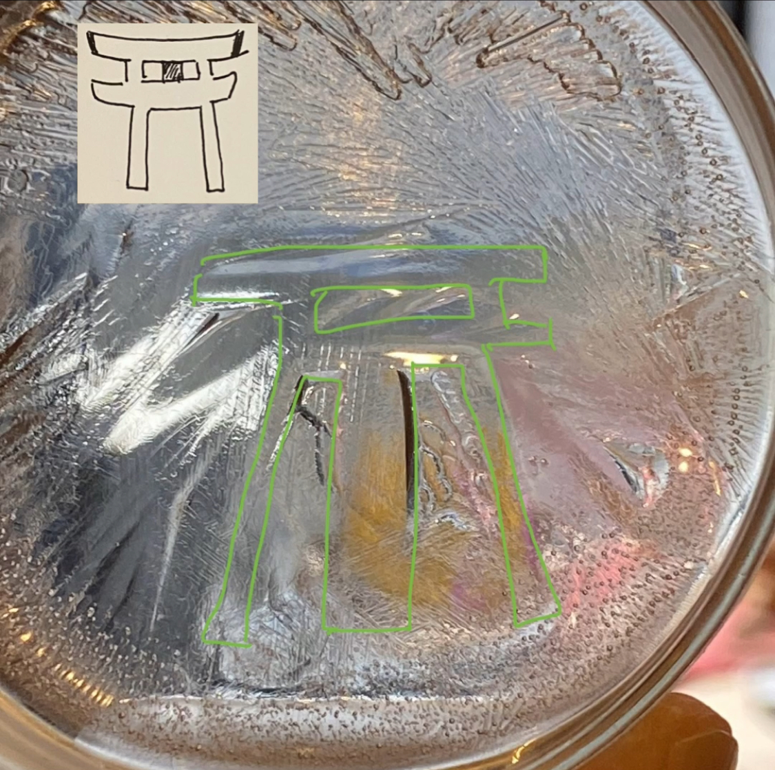 上手くいくと、シャーレの下に置いた写真や絵が浮き上がります。